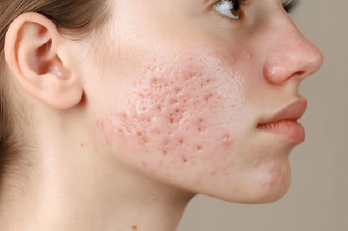 ظاهر میشوند. این اسکارها بیشتر در گونهها، پیشانی و چانه دیده میشوند.