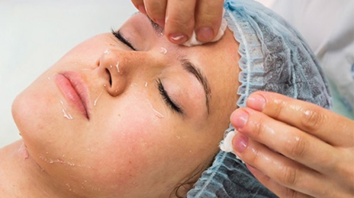 اسید با برس یا پنبه مخصوص روی پوست گذاشته میشود.